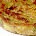 Calentar un poco de aceite en una sartén; verter la preparación anterior y cuajar la tortilla, a fuego suave, durante 5 minutos.